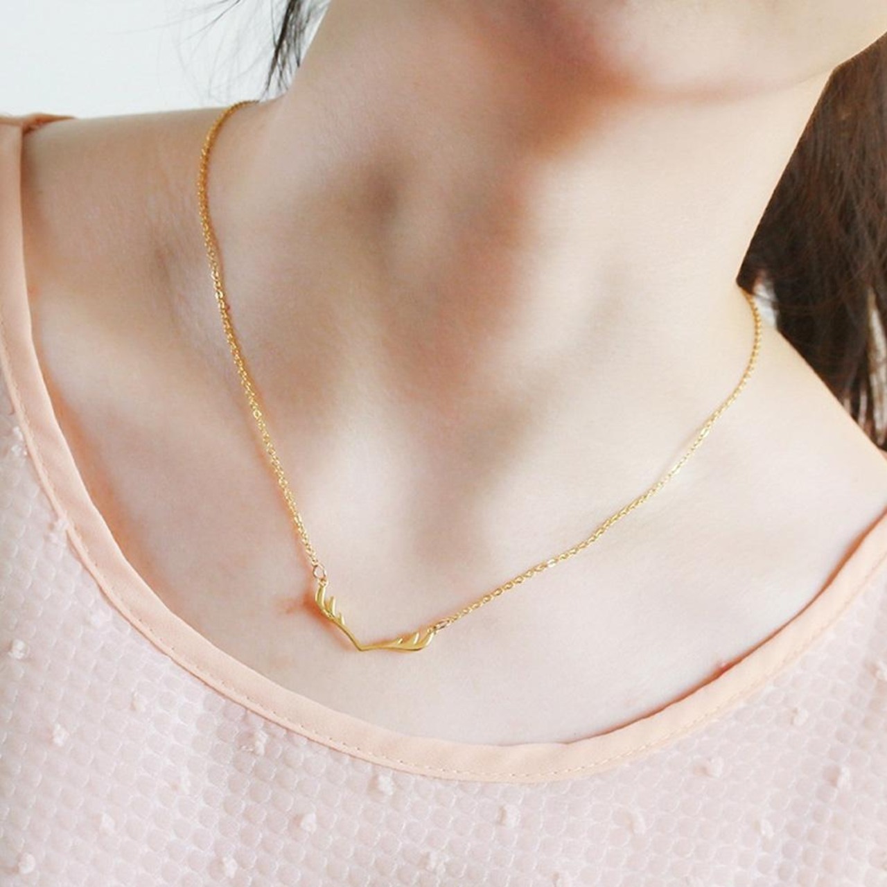 形がオシャレなフェザーネックレスです♪